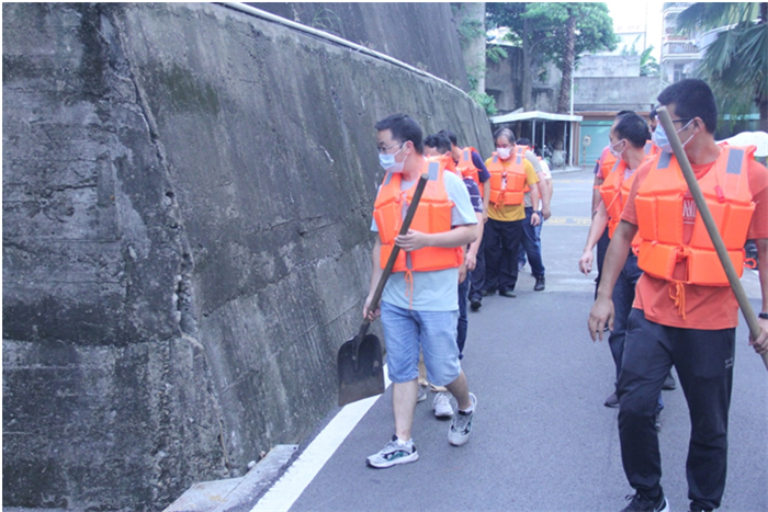 本次演练内容主要分为防洪土堤巡堤、搬运防洪沙袋封堵雨水、内涝围挡雨水入车库和转移低洼处物资四个项目,模拟因受台风天气影响,连续暴雨洪水,九龙江水位上升,公司内部也发生内涝,地面大量雨水涌入地下一层车库等为场景,公司接到市九龙江堤管处预报九龙江洪水水位超过警戒水位3米-3.5米和公司出现内涝汛情报告时,公司领导立即启动抗洪抢险应急预案二级响应,组织应急救援抢险队伍上南岸土堤巡查、搬运防洪沙袋堆积封堵、围挡雨水入车库、转移低洼处物资等实战实操防汛抢险应急演练。参演人员行动迅速、分工明确、动作协调、配合默契,正确及时有效地处置了险情。