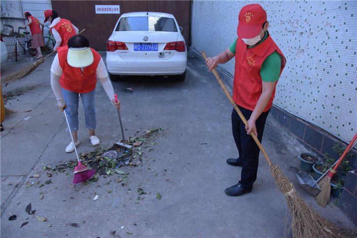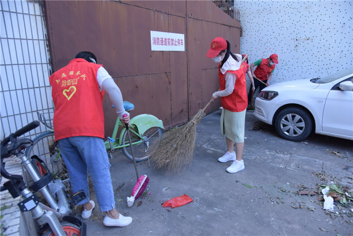 “那我们差不多开始行动吧。”南山社区书记的话音刚落,志愿者们便拿起扫帚,热火朝天地开启了今天的“灾后重建 助力创城”活动。此次志愿活动是对台风过后一片狼藉的南山路28号宿舍进行清扫。由于这里不属于环卫的工作范围,台风过后,各种倾倒的树枝、落叶遍地都是,影响了居民们的正常生活。为全力以赴做好台风灾后恢复,力争把台风带来的影响降到最低,积极推进漳州全国文明城市创建,解决居民们的烦恼,片仔癀药业和南山社区共同合作,组织志愿者撸起袖子,拿起工具,扫去脏污,留下卫生和文明。天气炎热,也阻挡不了志愿者们的干事热情。在众人的共同努力下,曾经垃圾成堆、味道难闻的社区焕然一新,恰逢微风徐来,卷携着空气中的草木香,为满头大汗的志愿者送来清凉。