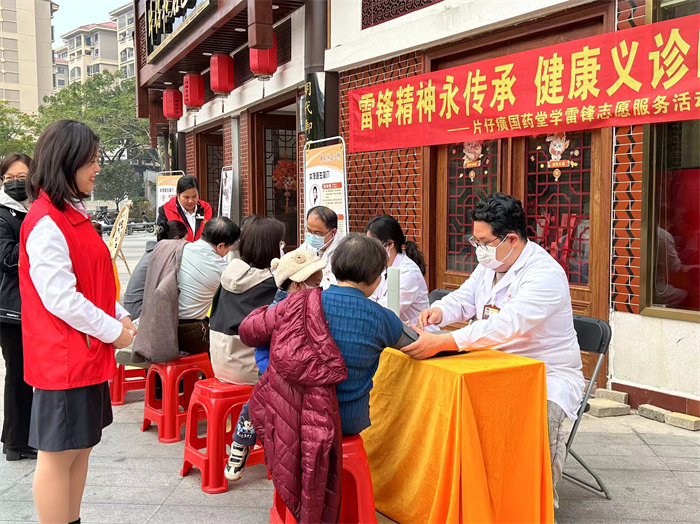 片仔癀国药堂认真贯彻落实市委、市政府“名医入漳”战略,大力引进省内外名中医坐诊,致力于为患者提供优质的诊疗服务。未来国药堂将立足新时代、展现新作为,进一步深化文明实践,弘扬时代新风,不定期开展健康义诊系列活动,弘扬中医药文化,传承奉献、友爱、互助、进步的志愿精神,在全社会大力营造崇尚雷锋、学习雷锋、争当雷锋的良好氛围,彰显片仔癀国药堂国企责任担当。