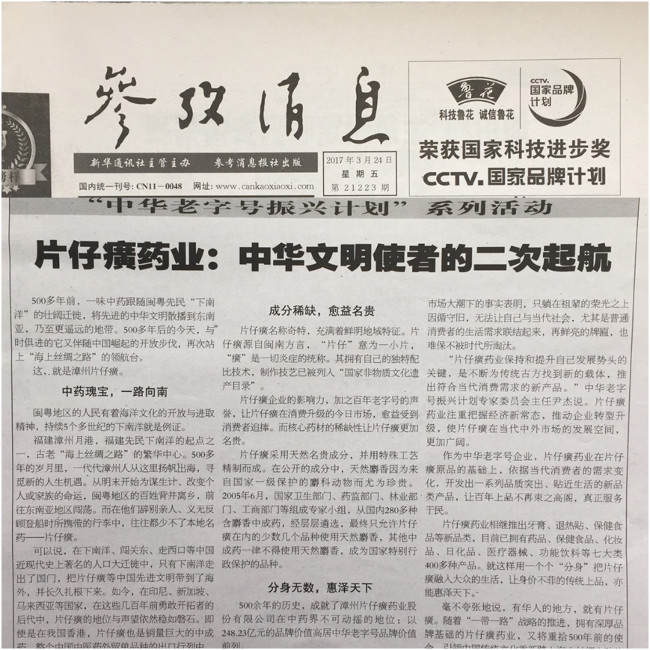 《参考消息》《片仔癀:中华文明使者的二次起航》《片仔癀:海上丝绸之路上的中国符号》