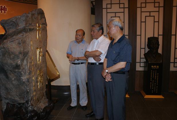 中国中药协会名誉会长张洪魁(左二)、中国民族医药协会会长诸国本(右一)在冯忠铭董事长(左一)陪同下参观片仔癀博物馆
