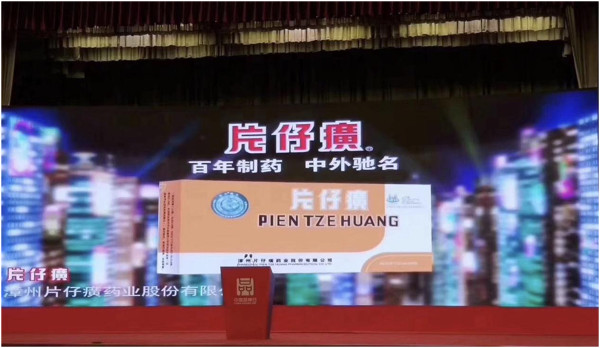 中国品牌发展国际论坛开始前,主席台大屏幕播放片仔癀简介