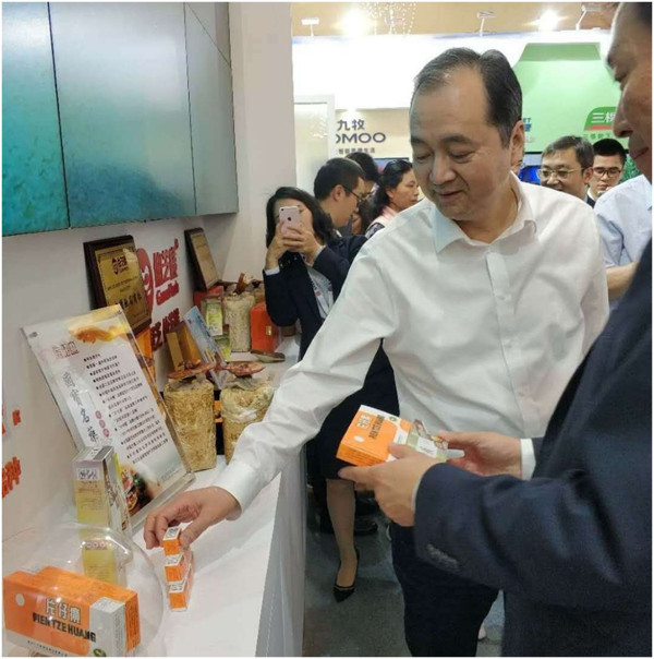在首届中国自主品牌博览会上,国家发改委副主任林念修、福建省副省长郑新聪莅临国宝名药片仔癀展位,了解国家一级中药保护品种片仔癀及系列产品。
