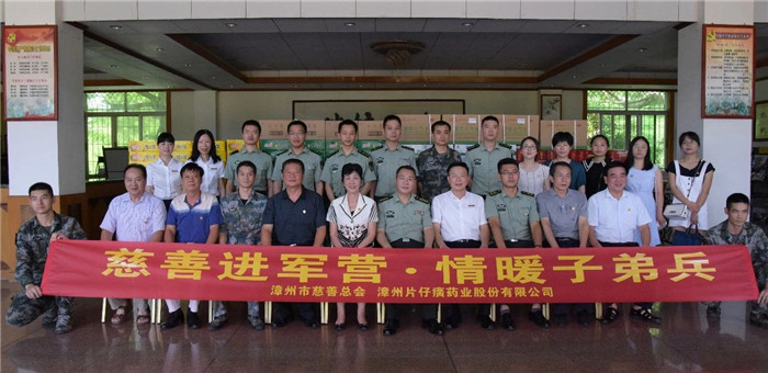在“八一”建军节来临之际,2019年7月25日,由漳州市慈善总会、漳州片仔癀药业股份有限公司联合主办的“慈善进军营·情暖子弟兵”慈善拥军救助活动在福建某预备役后勤保障旅举行。市慈善总会会长游婉玲,市退役军人事务局副局长蔡建,漳州片仔癀药业股份有限公司党委副书记、工会主席洪东明及市慈善总会、片仔癀药业公司等相关单位人员参加活动。