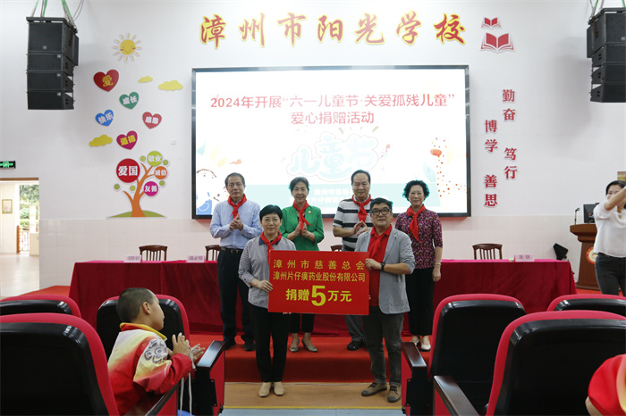 5月23日,在“六一”儿童节来临之际,漳州市慈善总会会长游婉玲、漳州片仔癀药业股份有限公司党群工作部负责人等带队走进市社会福利院开展“六一儿童节·关爱孤残儿童”爱心捐赠活动,漳州片仔癀药业股份有限公司现场分别向市福利院及市阳光学校捐赠15万元和5万元人民币,支持市社会福利院对患有重特大疾病的孤残儿童进行及时治疗,为市社会福利院服务对象们的健康保驾护航。
