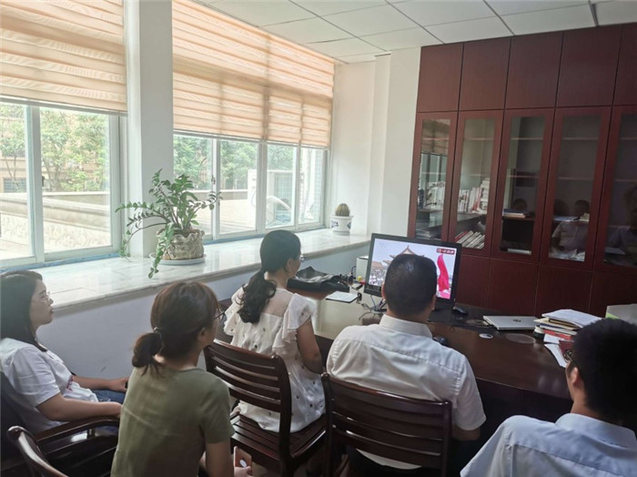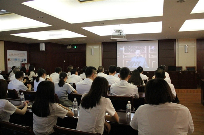 片仔癀上海家化口腔护理公司党员、干部集体收听收看庆祝中国共产党成立100周年大会直播。