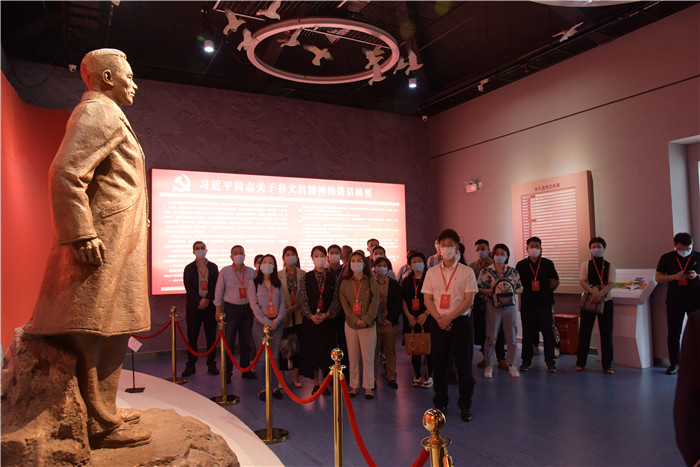 培训期间,还组织学员们前往谷文昌纪念馆、百里木麻黄、 东山保卫战纪念馆、寡妇村展览馆、南门海堤和乡村振兴示范村 ——石铺村等现场教学点,开展学习谷文昌先进事迹及乡村振兴专题课。在谷文昌纪念园,公司党委副书记陈纪鹏带领学员们瞻 仰谷文昌塑像、向谷文昌塑像敬献花篮、重温入党誓词,引导学 员们在观、学、思、悟中汲取精神力量。