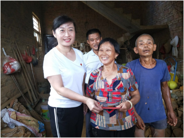 归来时已近黄昏,汗水浸湿了每一套红军服。翌日清晨,学员们兵分三路开始践行革命初心,深入乐北村慰问25户挂钩贫困户,与他们促膝长谈,详细解贫困户生活和身体等情况,详细记录他们的困难和需求,并把慰问金送到他们手中。