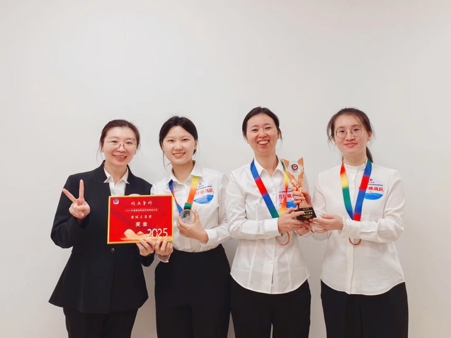 通过数月精心备赛、内部笔试选拔赛和全省网络预选赛,最终确定1名领队(蒋珍珍)和3名选手(何玉婷、林颖、黄瑜)组成片仔癀战队,出征复赛与决赛。复赛中,选手们以严谨的实验态度规范操作,顺利晋级。决赛现场,面对全省检验机构和优秀企业的强劲对手,参赛团队顶住压力、默契配合,凭借党建引领下锤炼的扎实专业能力和团结协作精神,在各项比试环节中稳步推进,最终斩获团体三等奖的优异成绩。