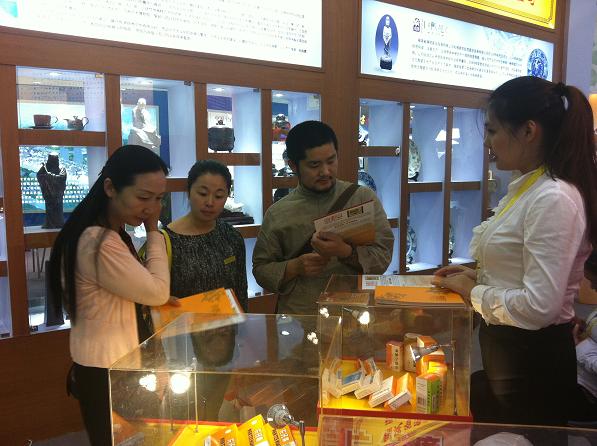图为我司参展人员向参观者介绍片仔癀