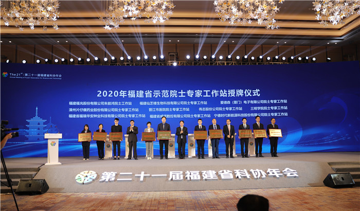 11月11日,由福建省科学技术协会、泉州市人民政府共同主办的第21届福建省科协年会在泉州开幕,包括中国科学院院士、中国工程院院士在内的专家学者、企业家代表约300人参加开幕式。开幕仪式上表彰10家2020年福建省示范院士工作站,片仔癀药业研究院院长于娟代表公司接受授牌。