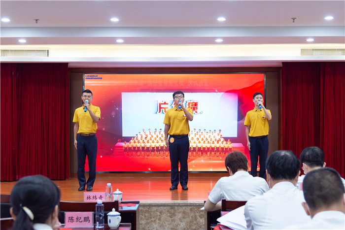 比赛开始前,在公司党委书记、董事长林纬奇的带领下,新老党员们面对鲜红的党旗高举右拳庄严宣誓,重温自己对党的忠诚誓言,表示了为党的事业奋斗终身和与企业共奋进的决心和信心。