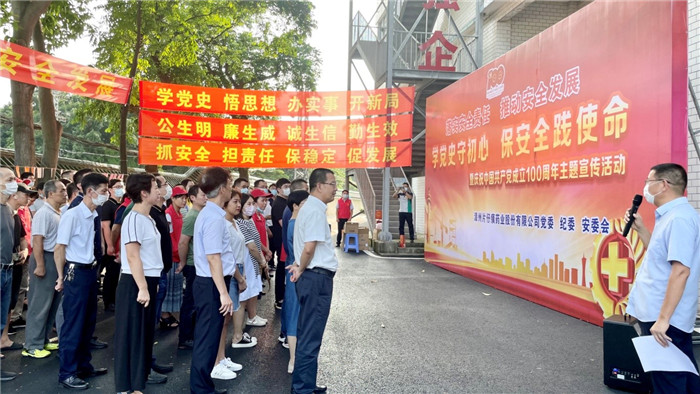 公生明,廉生威,诚生信,勤生效。为庆祝中国共产党百年华诞,歌颂中国共产党的光辉历程和丰功伟绩,弘扬党的优良传统和作风,保持清正廉洁的政治本色,提升全员安全意识和应急处置能力,片仔癀药业公司党委、纪委、安委会联合开展“学党史守初心保安全践使命——庆祝中国共产党成立100周年主题宣传活动”。公司总经理黄进明、副总经理陈纪鹏、纪委书记郑建成及一百余名干部职工参加活动。