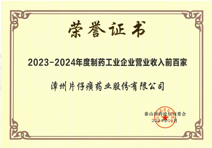2023-2024年度制药工业营业收入前百家企业